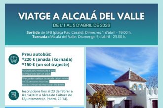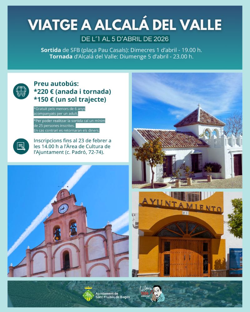 L’Ajuntament de Sant Fruitós de Bages obre les inscripcions per al viatge en autobús a Alcalá del Valle durant la Setmana Santa. La sortida serà…