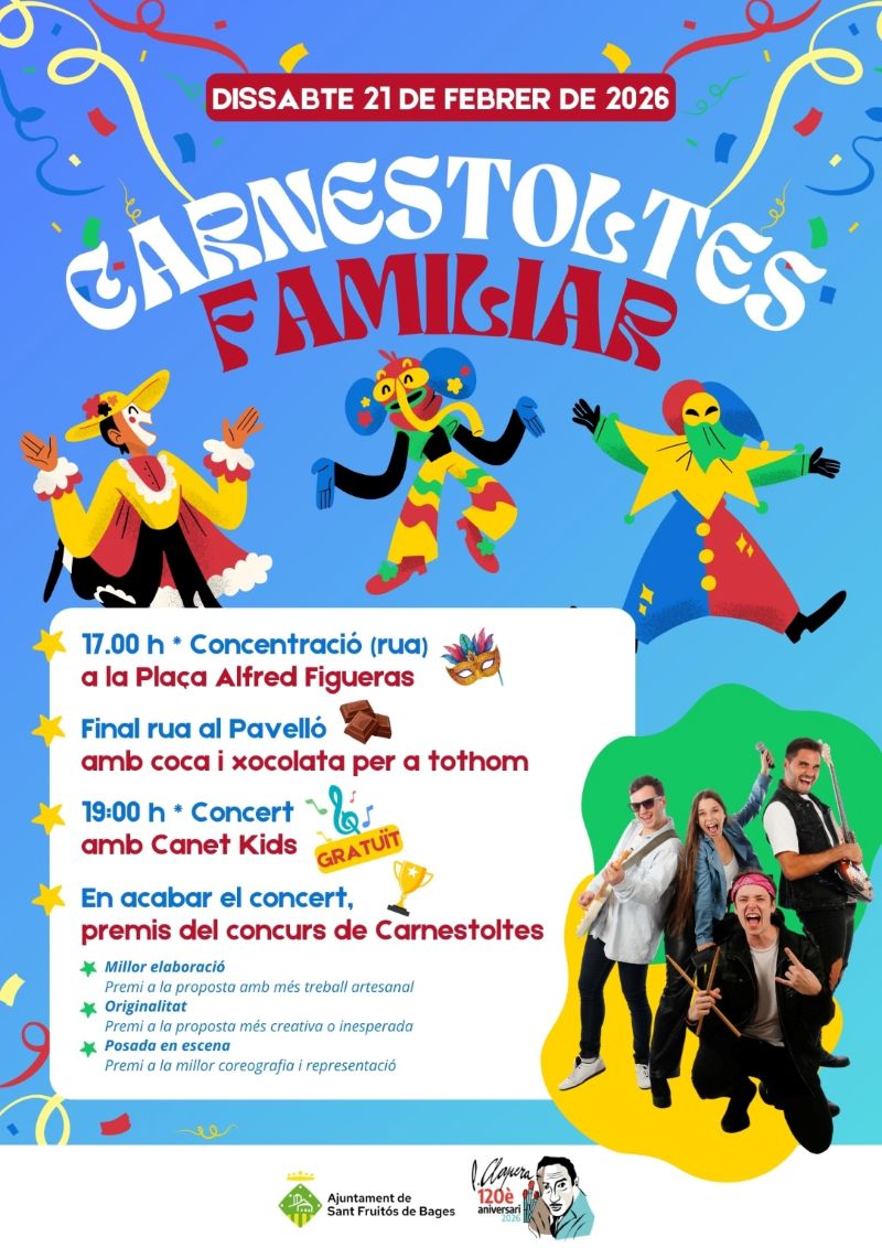Sant Fruitós de Bages celebrarà el Carnestoltes el 21 de febrer amb una rua familiar, l’espectacle La Nit del Canet Kids i una sessió DJ…