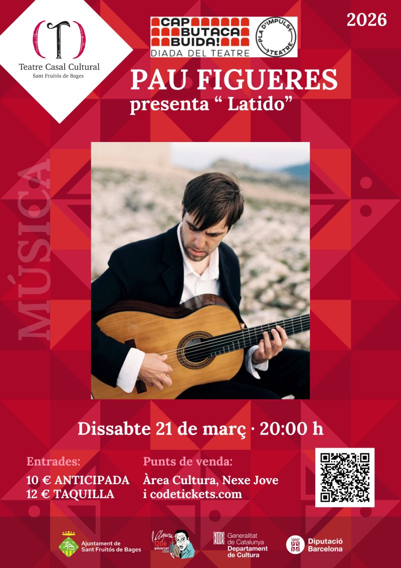El guitarrista i compositor Pau Figueres presenta el seu nou disc Latido al Teatre Casal Cultural de Sant Fruitós dins la iniciativa “Cap Butaca Buida”,…