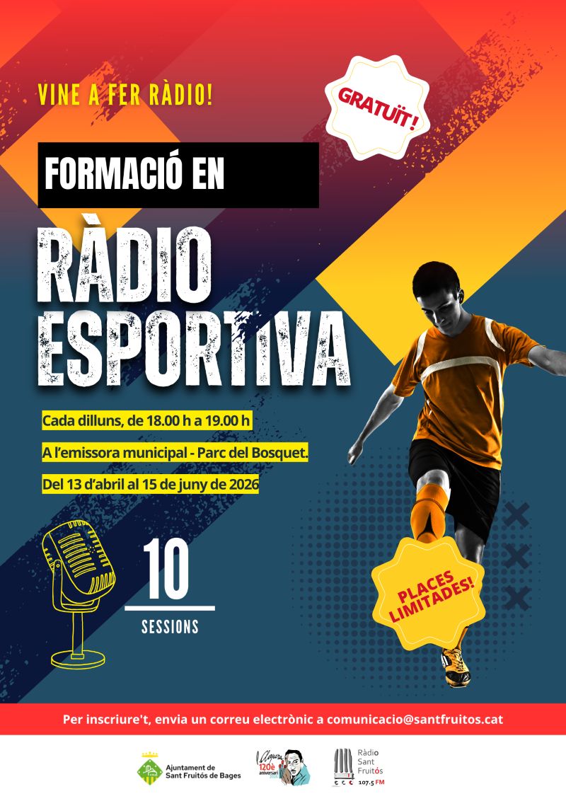 Sant Fruitós impulsa un curs gratuït de ràdio esportiva amb sessions pràctiques als estudis municipals. La formació començarà a l’abril i permetrà als participants col·laborar…