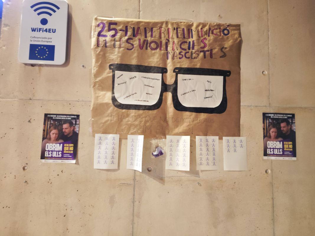 També, els assistents que van voler, van ser obsequiats amb un drapet de netejar ulleres que feia referència al lema del mural “Obrim els ulls” elaborat des del Nexe Jove i que va quedar penjat a la paret de l’Ajuntament on encara es podrà contemplar uns dies.