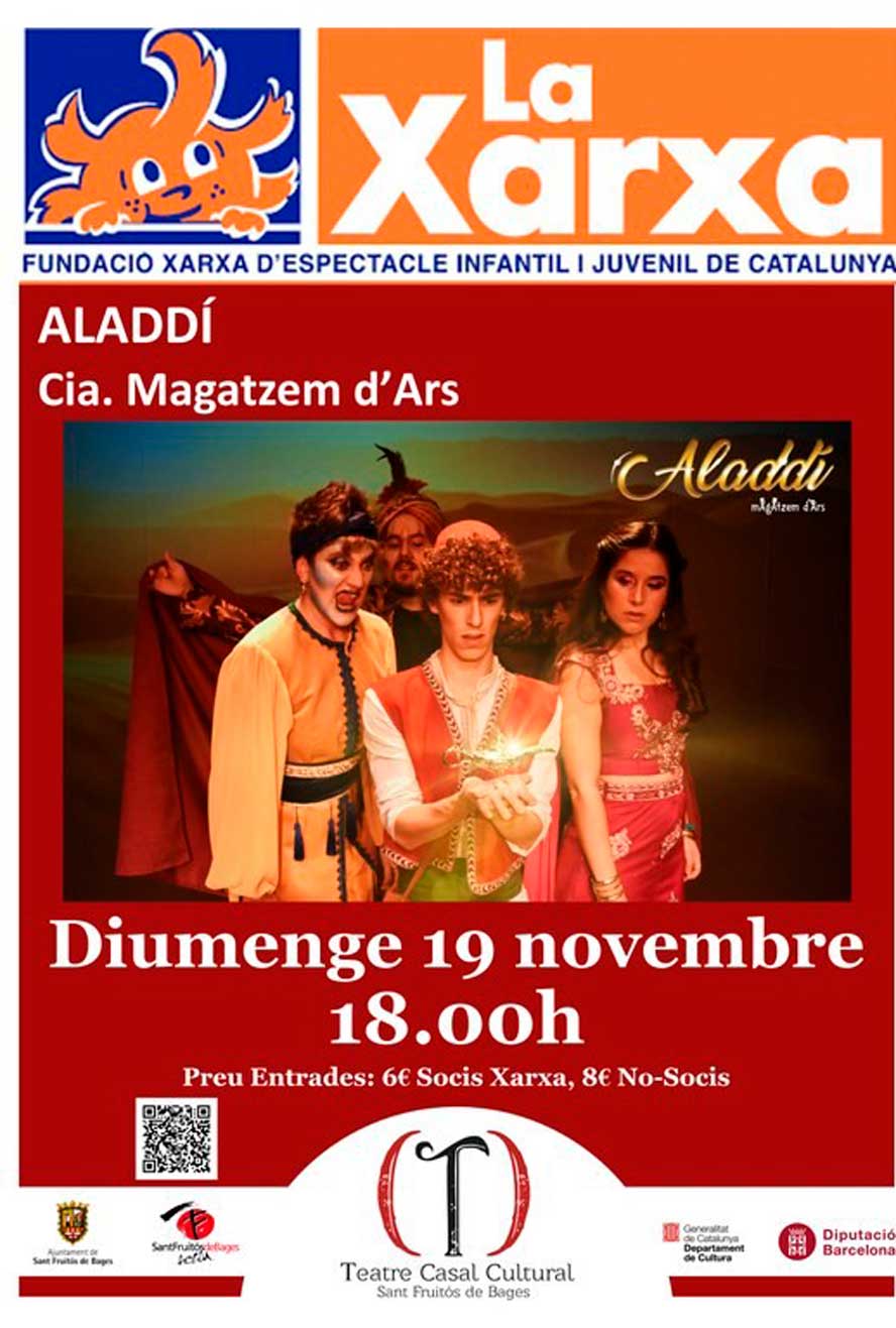 Aquest proper diumenge, a les 6 de la tarda al TEATRE CASAL CULTURAL, dins de la programació de XARXA, la companyia MAGATZEM D’ARS ens presentarà l’espectacle musical ALADDI.