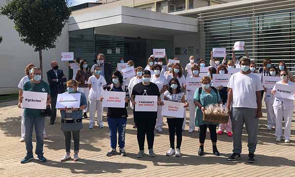 Ha estat amb la lectura del manifest que, els sanitaris han trencat el silenci amb un fort aplaudiment. “És gràcies a persones com vosaltres i al vostre esforç que podrem tornar a celebrar la vida d’abans” deien els nois i noies d’AMPANS, “i fer-ho amb vosaltres, col·lectivament, tots junts, que és el que més ens agrada”. El president d’AMPANS, Sebastià Catllà, i el director Toni Espinal, junt amb la responsable del servei de Centre Ocupacional, Cristina Llohis, que atén a prop de quatre-centes persones amb discapacitat intel·lectual, han acompanyat el grup.