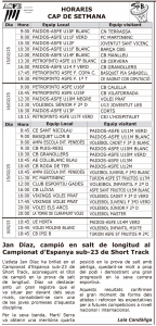 ASFE: Horaris del cap de setmana 15/16 febrer
