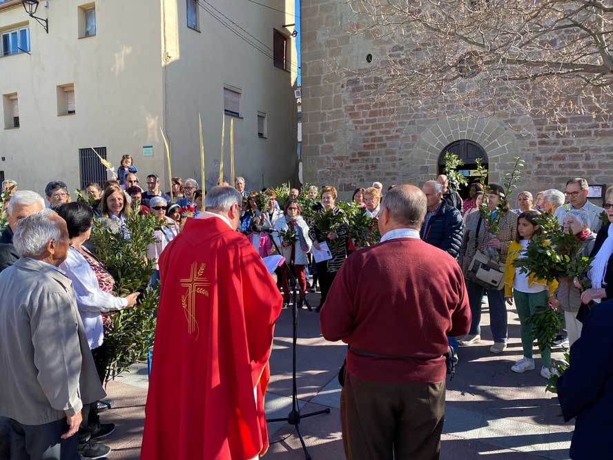 El passat diumenge abans de la Missa de Pasqua de Rams, a la plaça de l’Església, es va celebrar la tradicional Benedicció de Rams. Una festa molt concorreguda, aproximadament un centenar de persones entre, avis, pares i infants que amb palmes, palmons i molts rams de llorer i herbes aromàtiques com és romaní i farigola i també rams l’oliverer, per celebrar una diada molt entranyable i participada, dirigida per mossèn Florenci.