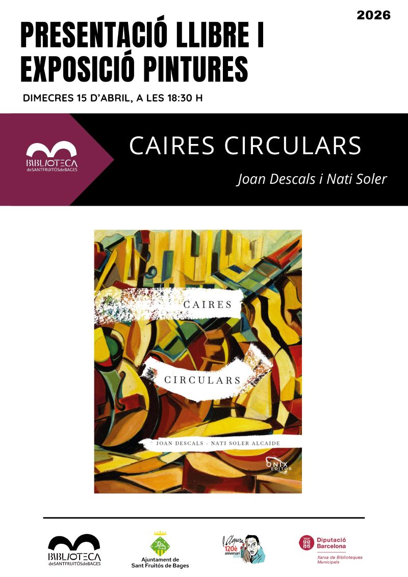 Sant Fruitós de Bages acollirà el dimecres 15 d’abril la presentació del llibre i la inauguració de l’exposició “Caires circulars”, una proposta artística que uneix pintura i poesia en un diàleg creatiu singular de la mà del pintor Joan Descals i la poetessa Nati Soler. L’acte tindrà lloc a 2/4 de 7 de la tarda a la Biblioteca i comptarà amb la presència dels autors.