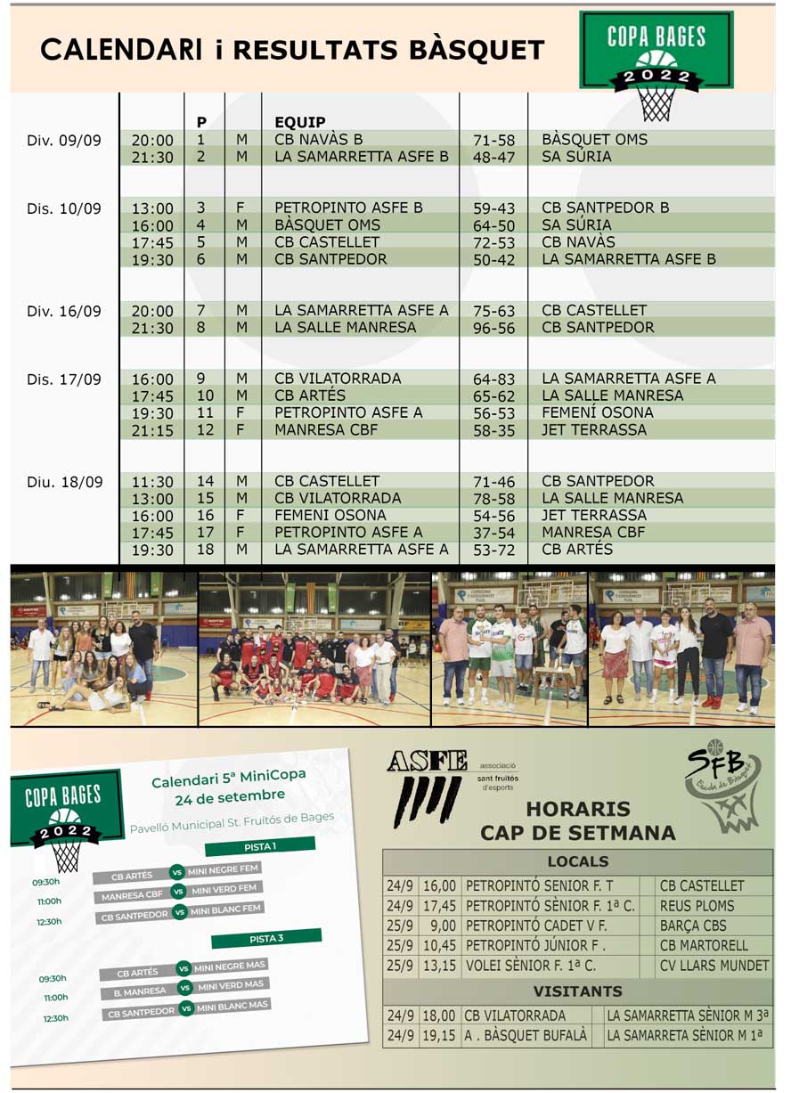 Activitat municipalActualitatEsports Calendari i resultats del cap de setmana i Copa Bages Última actualització: 25 de juliol de 2024 15:53 ASFE Comparteix Lectura de 0 min COMPARTEIX — - Anunci patrocinat - També et podria interessar Crònica de futbol, 10 d’octubre de 2025: COMENÇA EL GRUIX DE LLIGUES DE FUTBOL BASE Èxit de participació a la 2a edició de la Cycling Indoor de Sant Fruitós de Bages L’Ajuntament de Sant Fruitós de Bages i el Gobierno Autónomo Municipal de Sucre (Bolívia) signen un memoràndum d’agermanament Reparació del pontarró L’Ajuntament de Sant Fruitós de Bages organitza un taller gratuït de primers auxilis i ús de desfibril·ladors ETIQUETESASFE BasquetCopa Bages Comparteix aquest article Facebook Twitter Whatsapp Whatsapp Telegram Email Copiar enllaç Imprimir Deixar un comentari Deixar un comentari Deixa un comentari Cancel·la les respostesL'adreça electrònica no es publicarà. Els camps necessaris estan marcats amb *Comentari * Nom * Correu electrònic * Lloc web Desa el meu nom, correu electrònic i lloc web en aquest navegador per a la pròxima vegada que comenti. Segueix-nos FacebookM'agradaTwitterSeguir1.7kSeguidorsSeguir Última portada En paper i/o en digital Escull el format que més t'agradi Subscriu-te