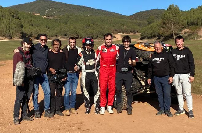 Carles Checa i el seu copilot Ferran Marco s’estan entrenant cara a la seva participació al ralli Dakar 2022, a l’Aràbia Saudí. A la foto, en el circuit de Les Comes, acompanyats de dos grans “dakaristes”, Nani Roma i Pep Vila.