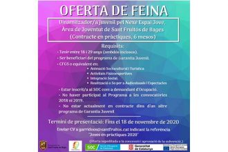 Per: Ajuntament.- L’Ajuntament de Sant Fruitós de Bages contractarà un jove en…