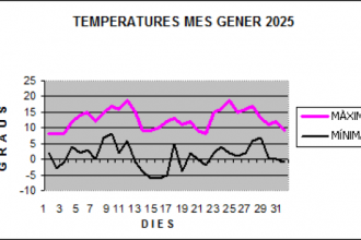 TEMPERATURES I PLUGES MES DE GENER 2025 DIA MÀXIMA MÍNIMA PLUJA…