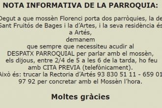 Degut a que mossèn Florenci porta dos parròquies, la de Sant Fruitós…