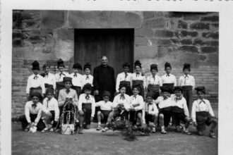 Coral infantil del Centre Parroquial, amb el rector Josep Sunyer. Foto de…
