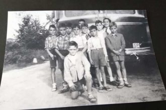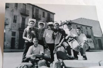 Anys 60. Ctra. de Vic, anant d’excursió. Ajupit: Josep Sala. Drets: Josep…