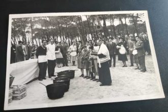 Festa de l’Arròs 1953. Cuiners: Lluis Noguera i Josep Planas. Mossèn: Josep…