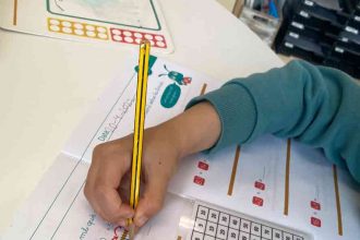 Els nens i nenes de cicle inicial de l’Escola Paidos, durant aquest…