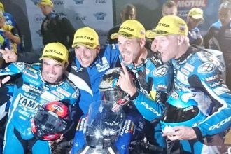 El pilot santfruitosenc David Checa, junt amb els seus companys de l’equip…