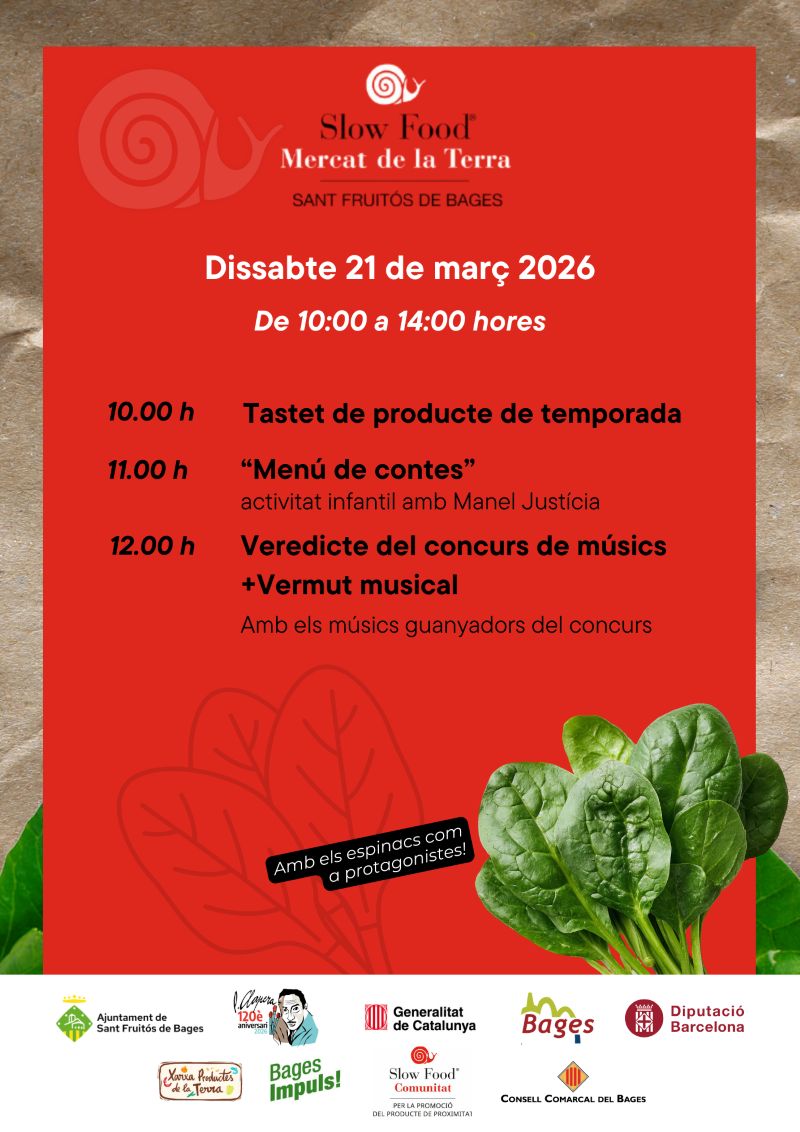 El Mercat de la Terra d’aquest mes de març comptarà també amb l’actuació d’algun dels grups guanyadors, que tindrà lloc a l’hora del vermut, un cop s’hagi fet públic el veredicte d’entre tots els grups participants.