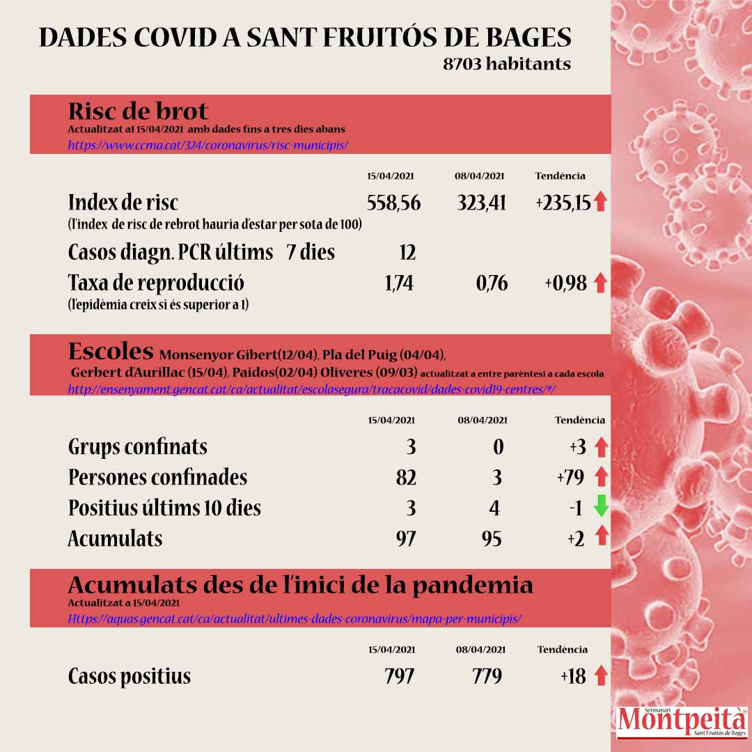 Dades COVID a Sant Fruitós de Bages 15 d’abril 2021