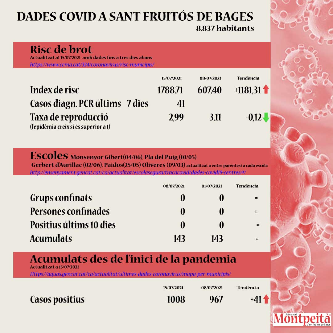 Dades COVID a Sant Fruitós de Bages 15 juliol 2021