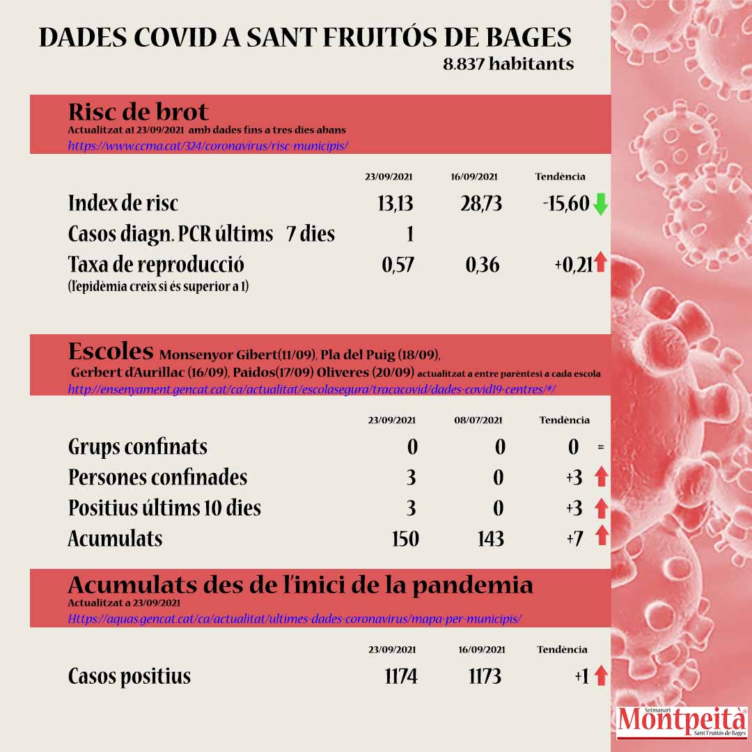 Dades COVID a Sant Fruitós de Bages 23 de setembre 2021.