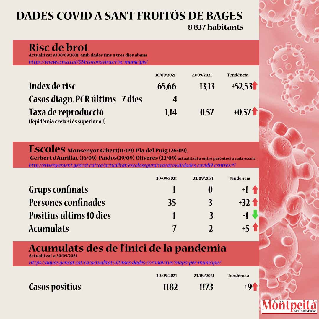 Dades COVID a Sant Fruitós de Bages 30 de setembre 2021.