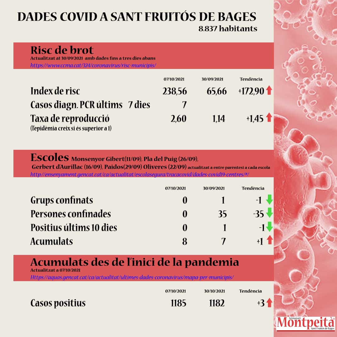 Dades COVID a Sant Fruitós de Bages 7 d’octubre 2021.
