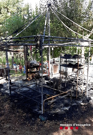 El 7 d’agost, pels volts de les tres del matí, els mossos van rebre l’avís d’un incendi en una tenda tipus bengalí en un càmping de Saldes (Berguedà).