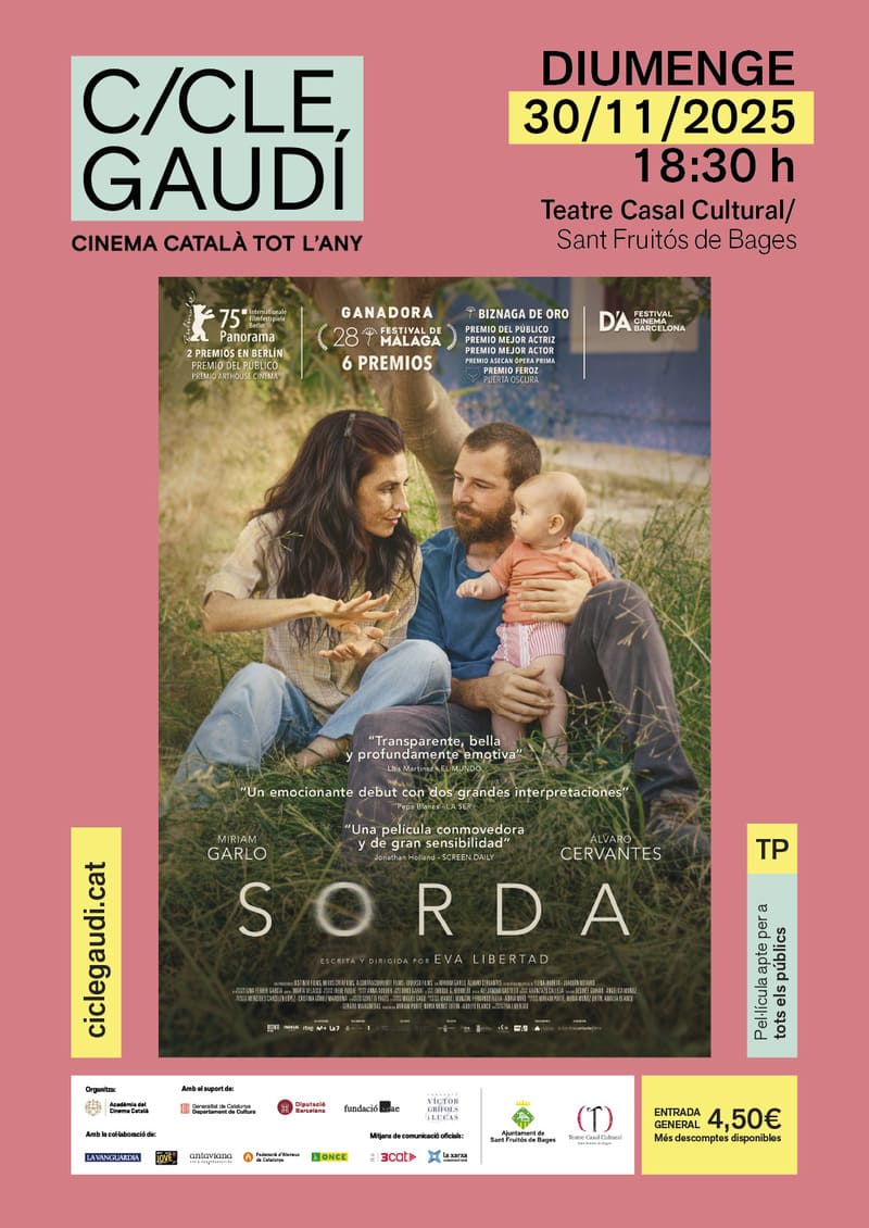 El Teatre Casal Cultural de Sant Fruitós de Bages programa una nova sessió del Cicle de Cinema Gaudí amb la projecció del film “Sorda”, un drama profund i emotiu que posa el focus en la maternitat i la sordesa.