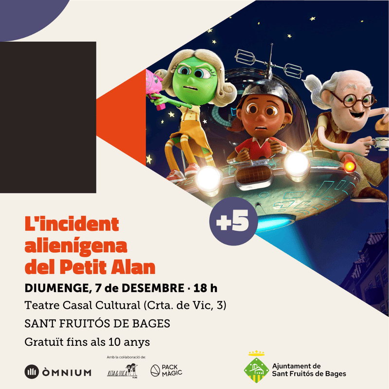 El cicle de cinema infantil en català CineXic tanca la temporada 2025 a Sant Fruitós de Bages amb la projecció de “L’incident alienígena del petit Alan”, una emocionant pel·lícula d’aventures i ciència-ficció pensada per a tota la família amb infants a partir de 5 anys.