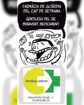 Farmàcia Calduch, de guàrdia el cap de setmana, al carrer Arquitecte Gaudí, 2 de Sant Fruitós de Bages.