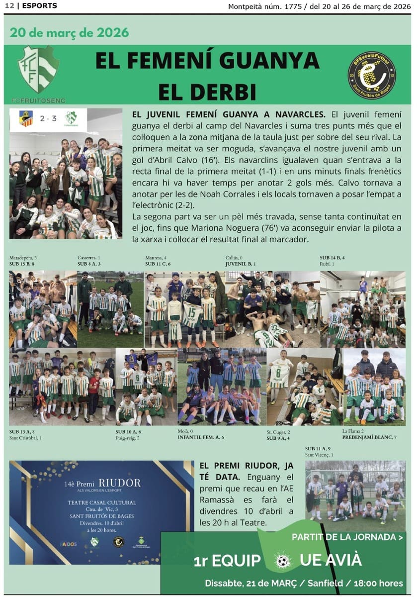 Crònica de FUTBOL, 21 de març de 2026, El femení guanya el derbi