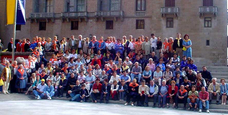 Després d’oir Missa ens van fer la foto del grup a les escales de la plaça.