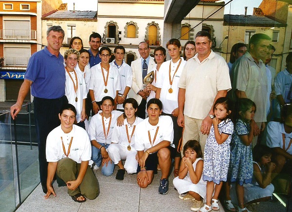 El juny del 2000, l’equip cadet de basquet femení de l’ASFE, va conquerir el títol de Campió d’Espanya, en les fases finals disputades a Múrcia, Fou rebut a la Casa de la Vila, per la corporació santfruitosenca, en una recepció presidida per Bartomeu Ayala, alcalde de Sant Fruitós; Tomàs Casero, regidor d’Esports; Lluís Cortés, vicepresident de la Federació Catalana de Basquetbol; i Josep Mensa president de l’ASFE.. Foto al balcó de la Casa de la Vila: autoritats, jugadores i l’entrenador Jordi Romeu. Arxiu J. Grandia