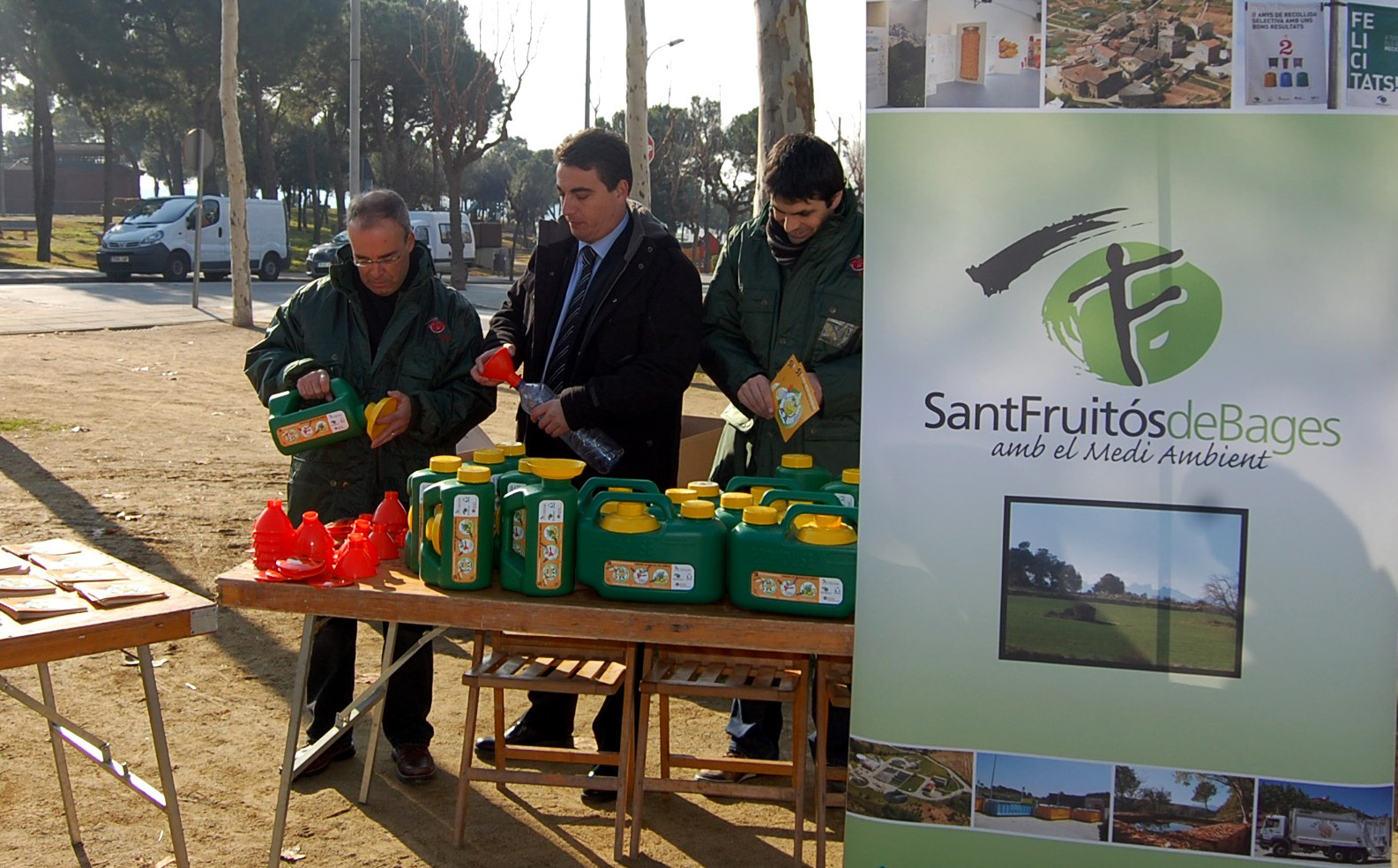 A una carpa instal·lada al Mercat de Sant Fruitós, a primers de gener del 2011 va tenir lloc l’acte de presentació de la campanya de recollida d’oli domèstic, que estava inclosa en les diferents campanyes “*Siguem Responsables*”, que els últims anys va organitzar la regidoria de Medi Ambient de Sant Fruitós.