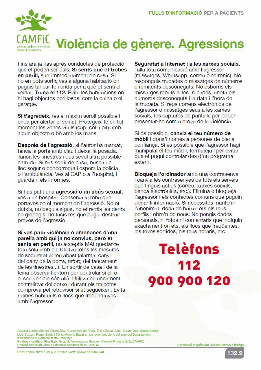Fulls d’informació per a pacients. Violència de gènere. Agressions