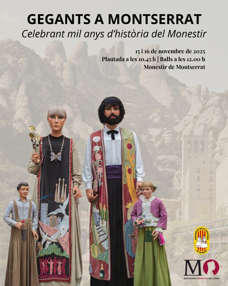 Els pròxims 15 i 16 de novembre, Montserrat acollirà una trobada de gegants amb motiu del mil·lenari del monestir, una cita que reunirà colles d’arreu per retre homenatge a mil anys de tradició, fe i cultura.