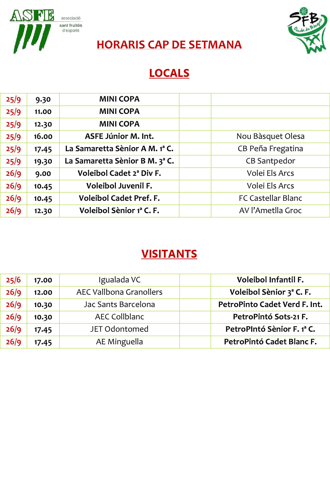 Horaris ASFE SFB