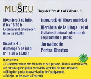 Avui inauguració del nou Museu municipal a la plaça de l’Era de Cal Vallbona. Memòria de la vinya i el vi.