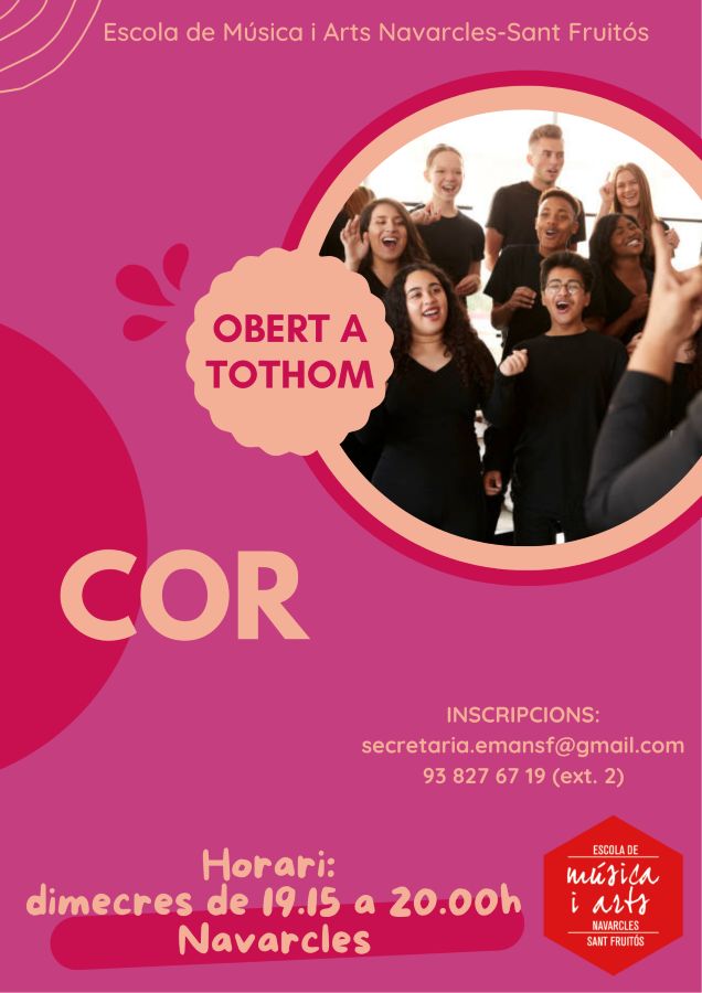 Cor: si voleu cantar, sentint la vibració del vostre cos en sintonia amb altres veus, aquest és el vostre lloc. El Cor és la nostra coral intergeneracional, on s’ajunten les veus d’aquells que gaudeixen amb el sol fet de cantar sense el requeriment d’haver de saber llegir partitures.
