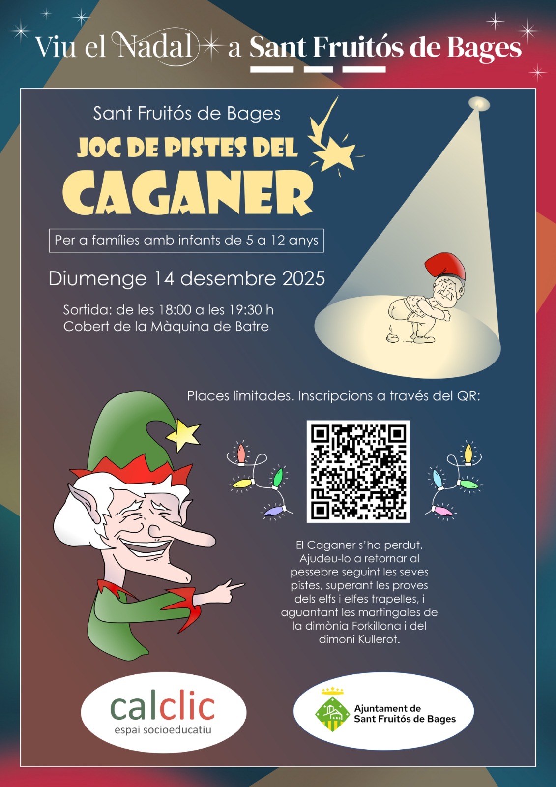 El joc parteix de la premissa que el Caganer s’ha perdut a prop del Mercat de Nadal, i que cal trobar-lo per poder retornar-lo al pessebre. Per fer-ho caldrà seguir “pistes pudents” i superar proves cooperatives que proposaran els elfs i les elfes trapelles. Tot plegat, mentre s’intenta esquivar les entremaliadures de la dimònia Forkillona i del dimoni Kullerot, que no ho posaran gens fàcil.