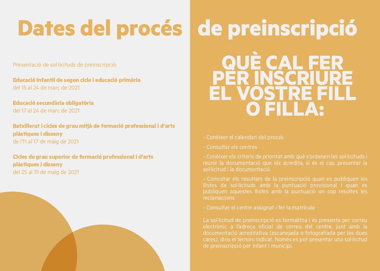 Un cop finalitzades les jornades de portes obertes s’iniciarà el període de preinscripcions: