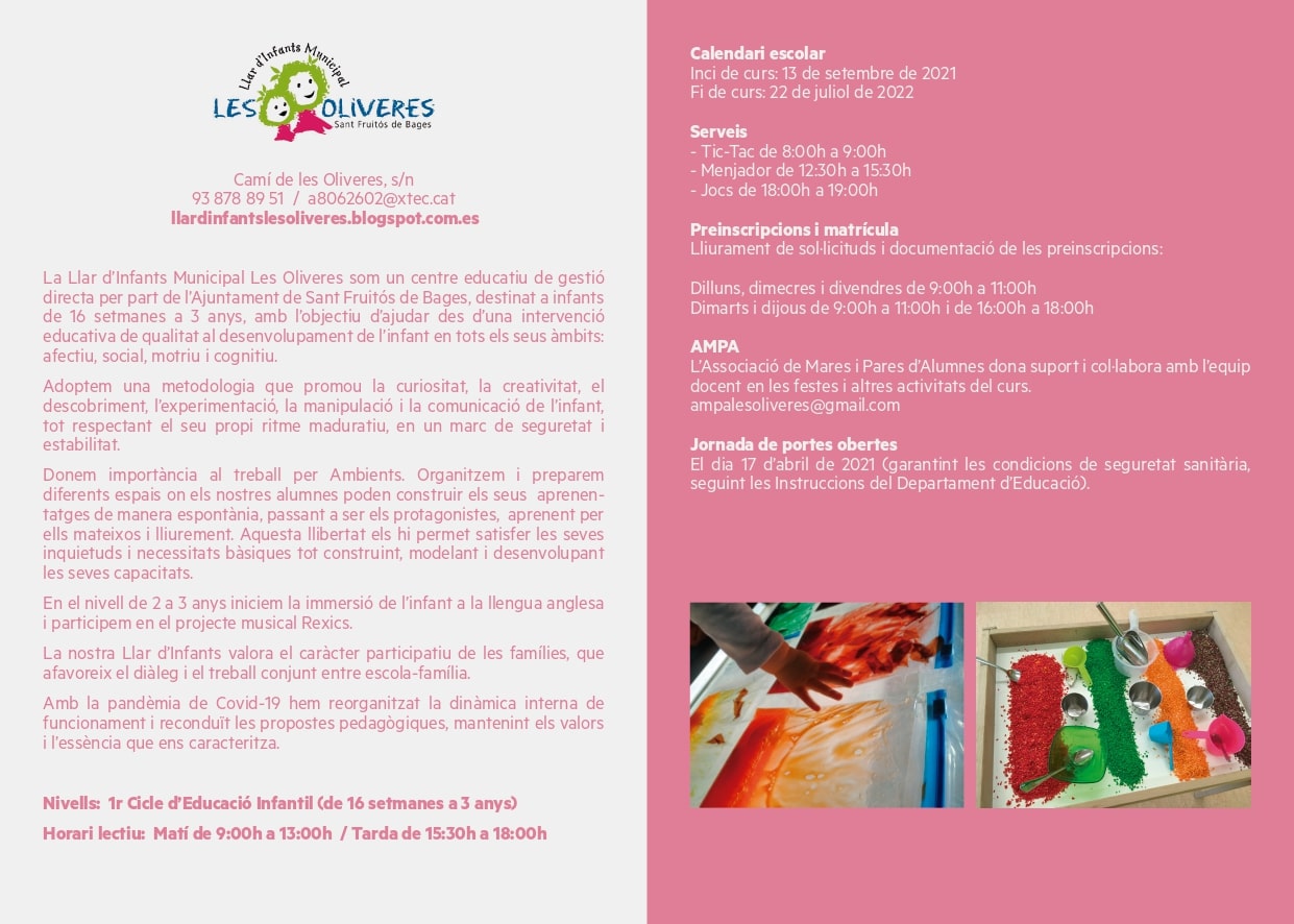 - Llar d’infants Les Oliveres: 17 d’abril – Tel. 93 878 89 51