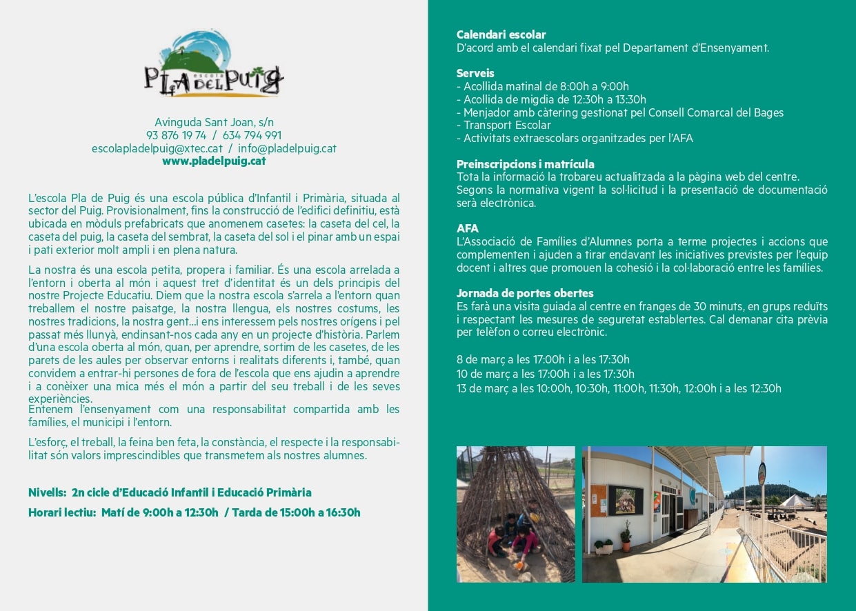 - Escola Pla del Puig: 8, 10 i 13 de març – Tel. 93 876 19 74 / 634 794 991