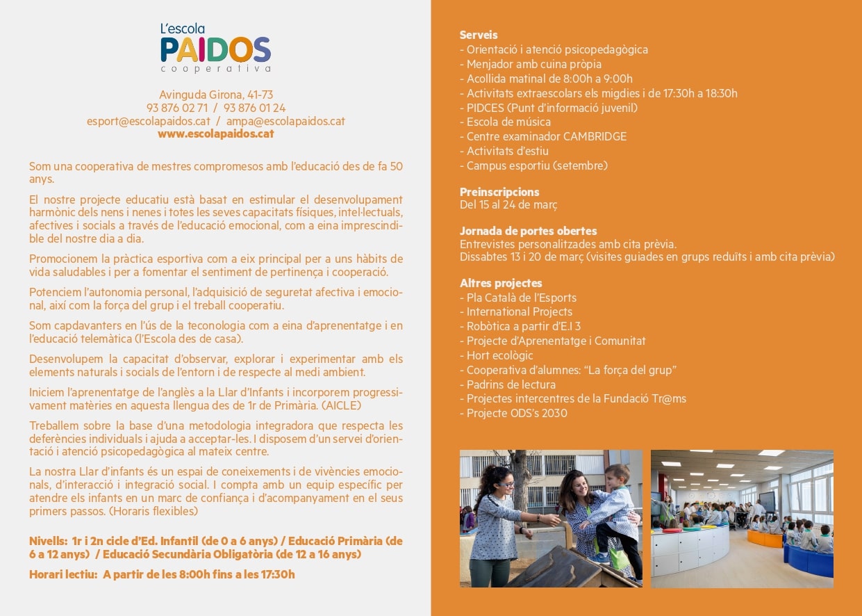 - Escola Paidos: 13 i 20 de març – Tel. 93 876 02 71 / 93 876 01 24