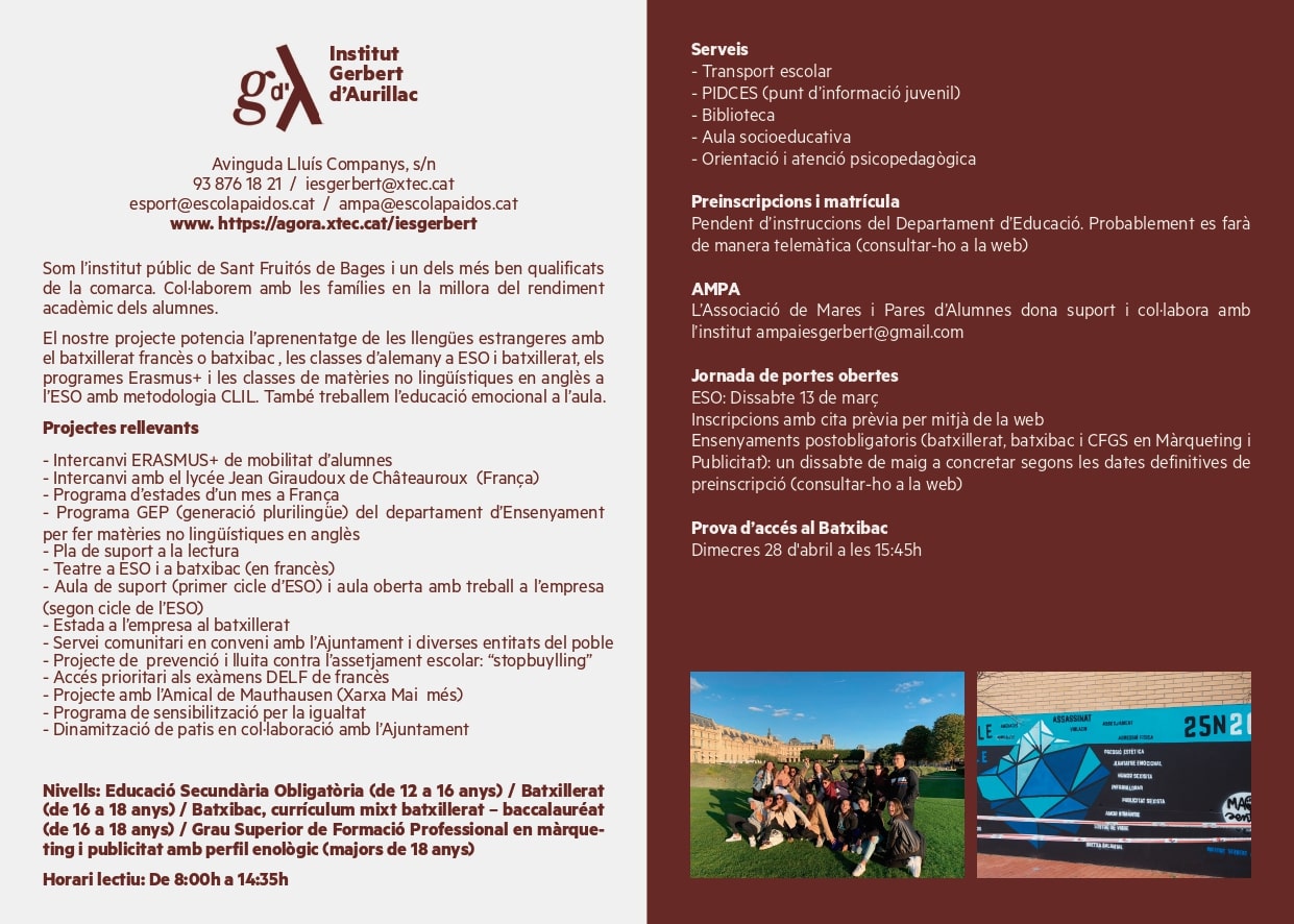 - Institut Gerbert d’Aurillac: 13 de març (ESO) -Tel. 93 876 18 21