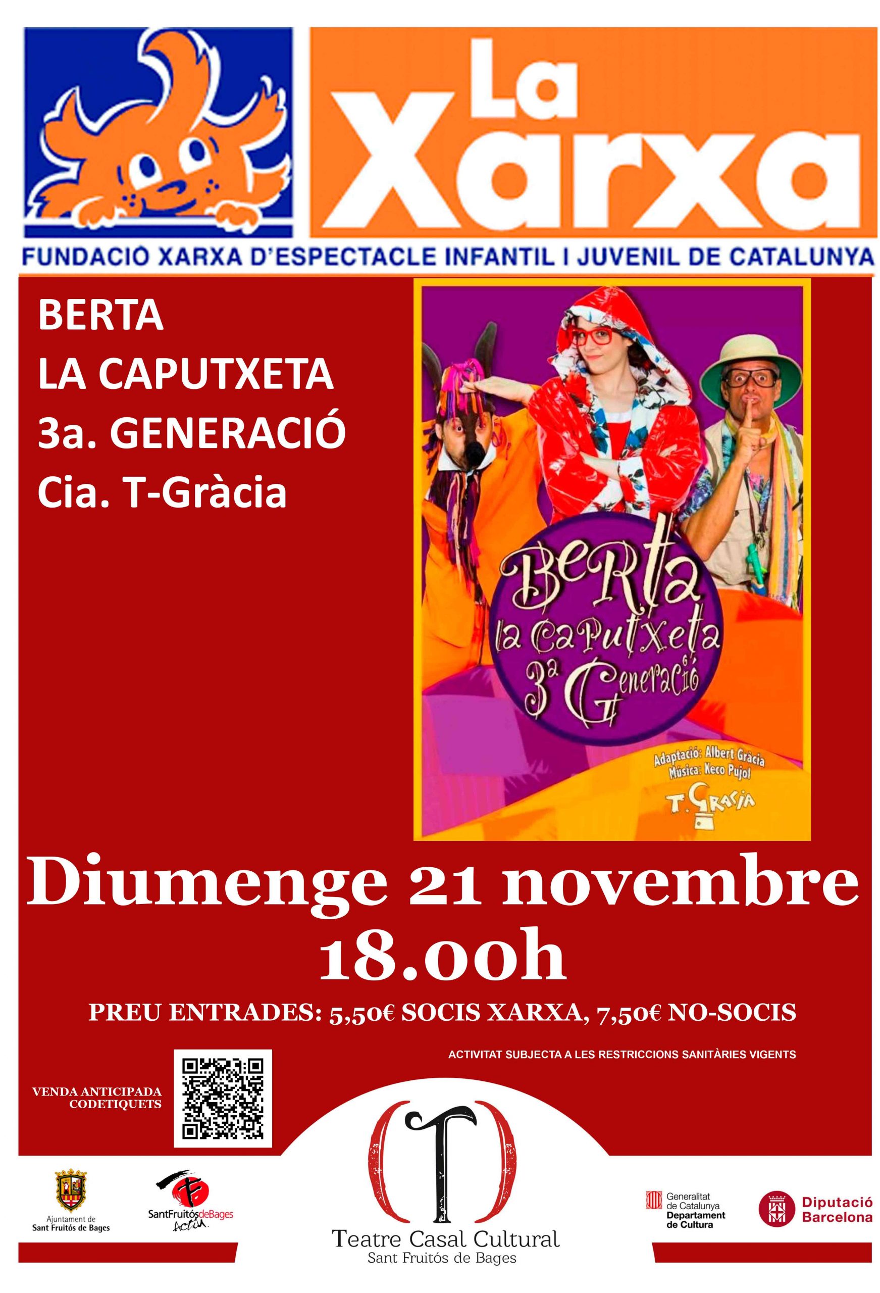 El diumenge 21 de novembre a les 6 de la tarda les famílies tenen l’oportunitat de gaudir amb l’espectacle musical “Berta: La caputxeta vermella, 3a generació”.