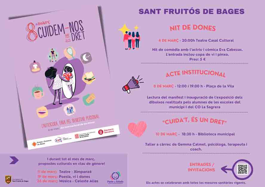 El proper divendres 4 de març Sant Fruitós de Bages donarà el tret de sortida als actes entorn del Dia Internacional de la Dona amb una nit únicament per a les dones al Teatre Casal Cultural.