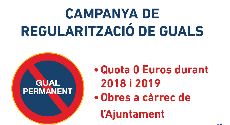 La campanya municipal implica que tots els veïns que sol·licitin un gual no hauran d’abonar la quota tributària a l’Ajuntament durant els exercicis del 2018 i 2019 i hauran d’abonar únicament 21€ per tal d’obtenir la llicència, que implica el lliurament de la placa corresponent.