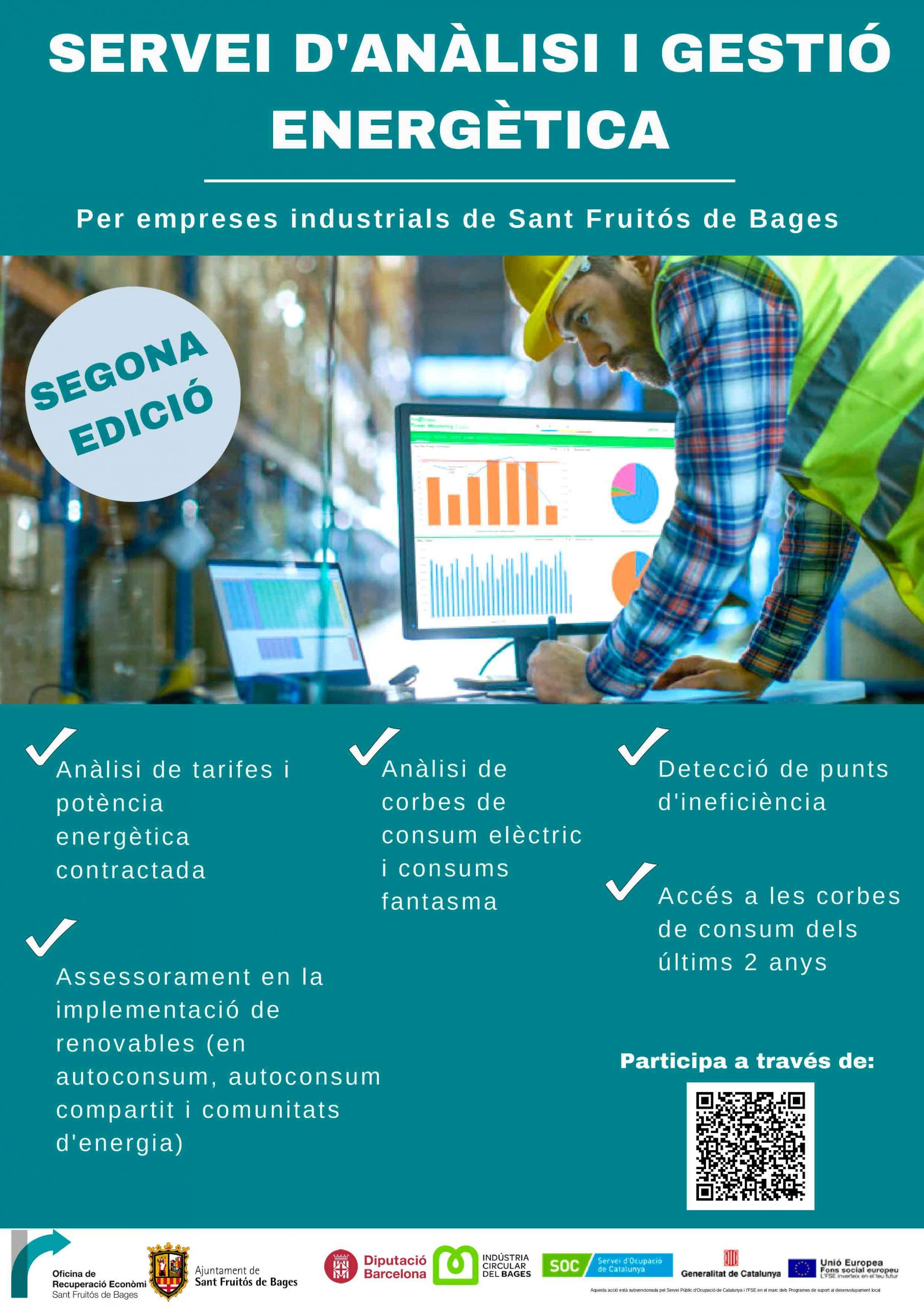 Les empreses que vulguin participar en aquest projecte, tindran accés a un expert que realitzarà una diagnosi analitzant les tarifes, la potència energètica contractada, les corbes de consum elèctric i els consums fantasma i, a partir d’aquesta anàlisi, els farà propostes de millora. A banda, també rebran assessorament en la implementació d’energies renovables, autoconsum i autoconsum compartit i es revisaran els costos de la gestió de residus i la seva optimització.