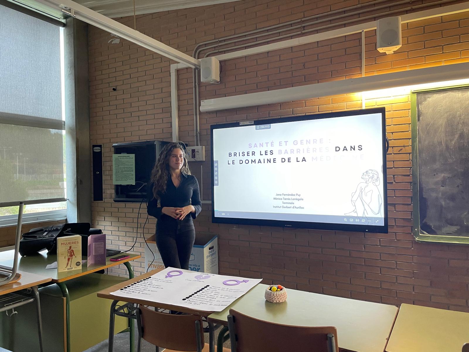 D’altra banda, tal com esmentàvem més amunt, alguns alumnes van defensar el treball de recerca en francès. És el cas, per exemple, de la Sofia Casilimas, la Jana Fernàndez i l’lsaac Singla, que cursen el programa de doble titulació batxibac. La Sofia Casilimas va analitzar les diverses branques del cristianisme i la influència que tenen en la comunitat local, en concret, al Bages. Mitjançant enquestes i entrevistes, es va proposar d’entendre com es relacionen els joves amb la seva pròpia fe, les pràctiques religioses que adopten i la participació d’aquests joves en activitats comunitàries. La recerca de la Jana Fernàndez, també defensada en francès, tenia com a objectiu principal de deixar constància de la pràcticament inexistent perspectiva de gènere en el camp de la medicina. Com en el cas de la Sofia, es va basar en entrevistes a especialistes i enquestes per concloure que no només existeix un buit en medicina pel que fa a la diferenciació entre homes i dones, sinó que va constatar que és un buit que perjudica tots dos gèneres. També, va saber aportar propostes per incloure la perspectiva de gènere en l’àmbit de la medicina. Finalment, l’Isaac Singla va comparar la interlingua, una llengua auxiliar construïda, amb el català, una llengua romànica natural, tot analitzant l’etimologia, la fonologia, el lèxic, la morfologia i la sintaxi per avaluar-ne la facilitat de comprensió i aprenentatge. Va examinar les similituds i les diferències clau i va determinar si la interlingua podria ser una llengua auxiliar internacional eficaç, especialment per als parlants de llengües romàniques.